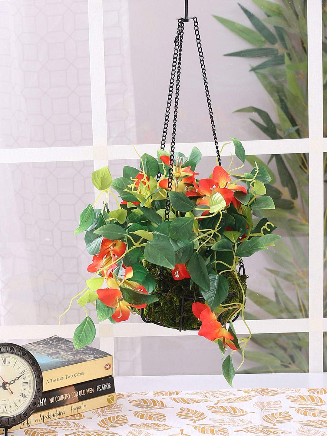 Whether you want to enhance a cozy home corner or elevate outdoor décor for cafés, hotels, or events, this orange red bougainvillea hanging plant adds beauty, depth, and freshness effortlessly.